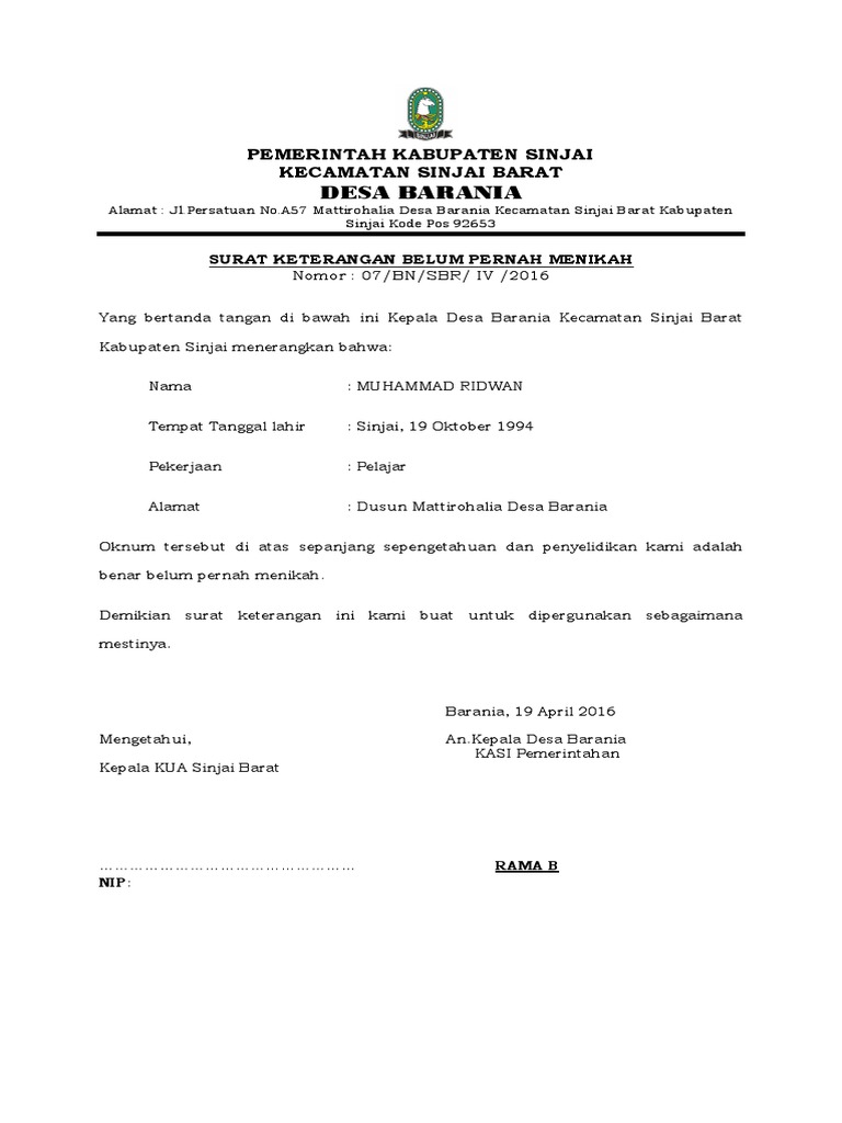 Adakalanya urusan administrasi atau prosedur tertentu membutuhkan surat keterangan. Text of surat keterangan sudah menikah.docx. Pihak pembuat surat keterangan = berfungsi untuk memberikan keterangan (orang yang meminta surat tersebut) kepada pihak lain yang berkepentingan. Hal tersebut bisa kamu manfaatkan sebagai salah peningkatan skill selain dari magang juga bisa kamu dapatkan dari kursus. Uji niantari tempat, tanggal lahir :